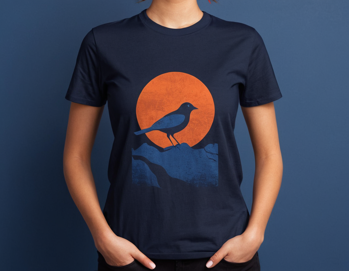 Ladies chest printed T- Shirt - Navy