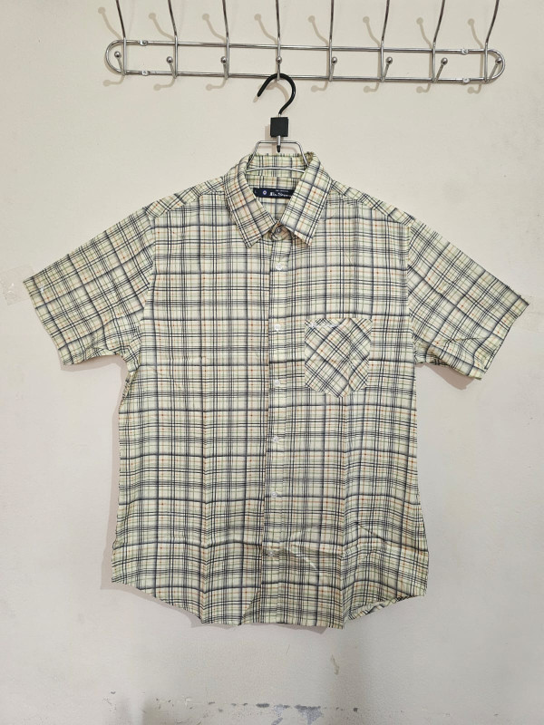 Keep your style fresh and comfortable with this men’s short sleeve shirt featuring a classic beige check pattern with subtle tones of black and orange. Crafted from lightweight, breathable fabric, this shirt is perfect for everyday wear in warm weather. The timeless check design, functional chest pocket, and relaxed fit make it an essential addition to any wardrobe.