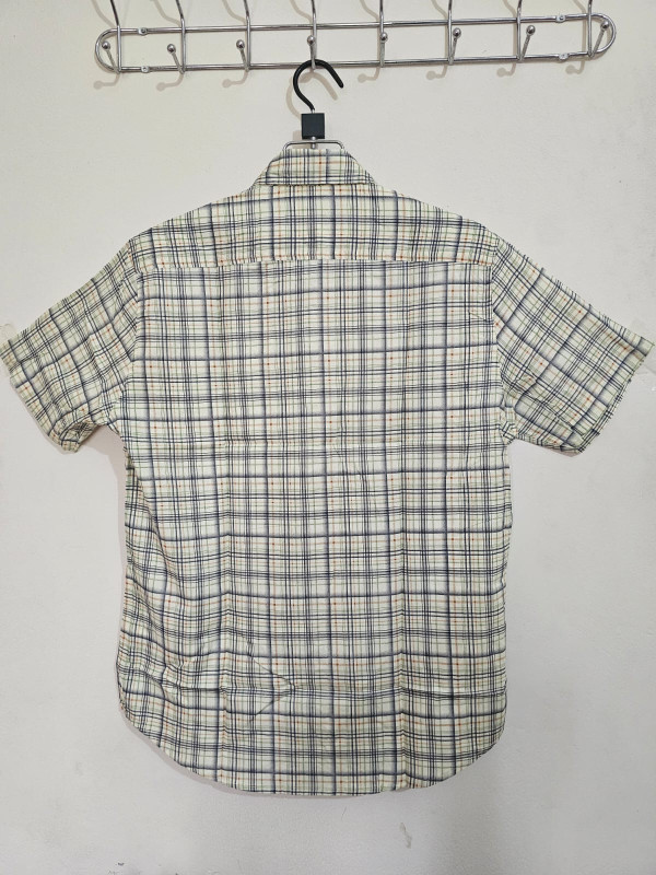 Men’s Classic Beige Check Short Sleeve Casual Shirt – Lightweight Summer Wear
