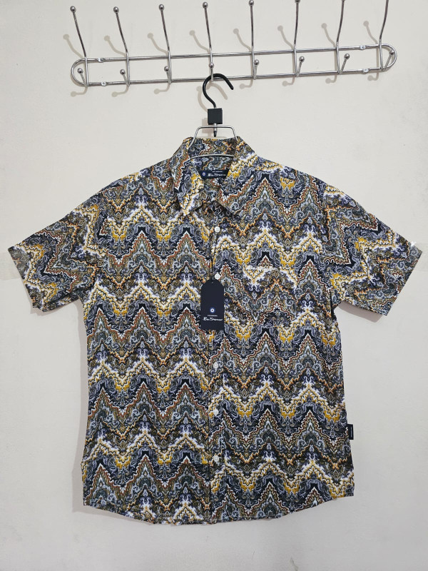 Elevate your casual style with this premium men’s short sleeve shirt featuring a bold zigzag wave print in rich tones of yellow, white, black, grey, and brown. Crafted for comfort and style, this lightweight shirt is perfect for summer outings, beach trips, and casual gatherings.